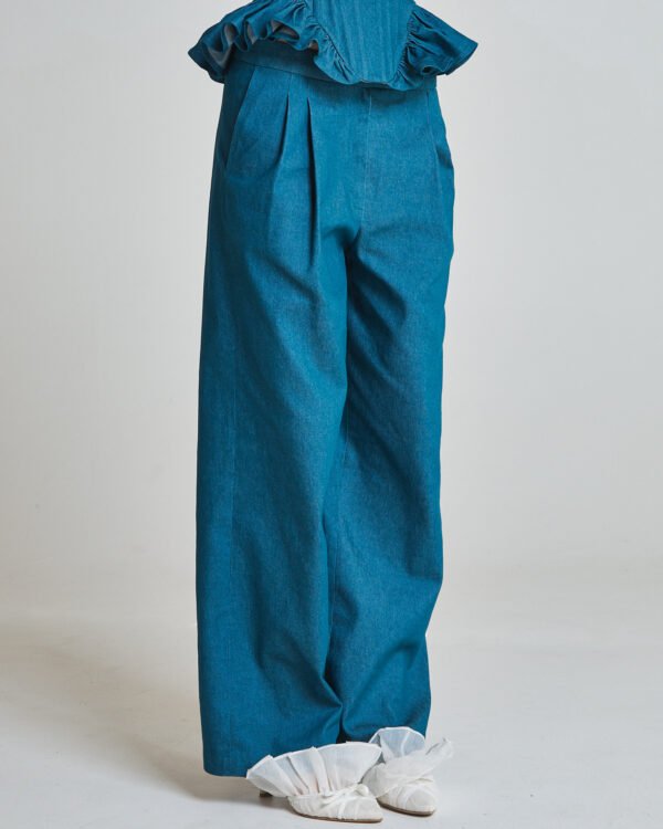 Pleated Linen Trousers – Sage Blue
