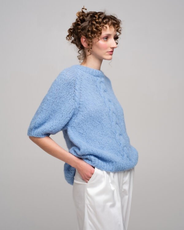 KNITTED KIDMOHAIR SWEATER WITH BRAID DETAIL IN PASTEL BLUE