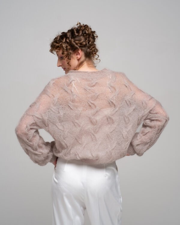 KNITTED KIDMOHAIR SWEATER WITH BRAID DETAIL IN DUSTY PINK