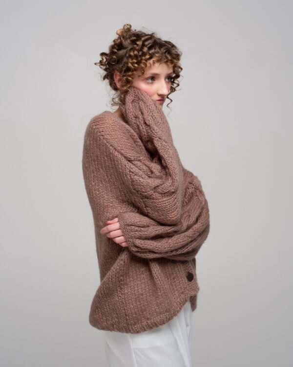 KNITTED KIDMOHAIR SWEATER WITH BRAID DETAIL IN LIGHT MOCCA
