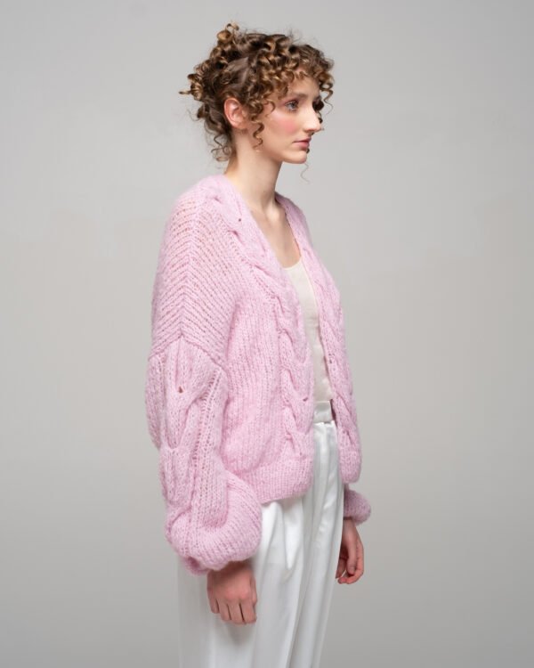 KNITTED KIDMOHAIR CARDIGAN WITH BRAID DETAIL IN LILAC PINK