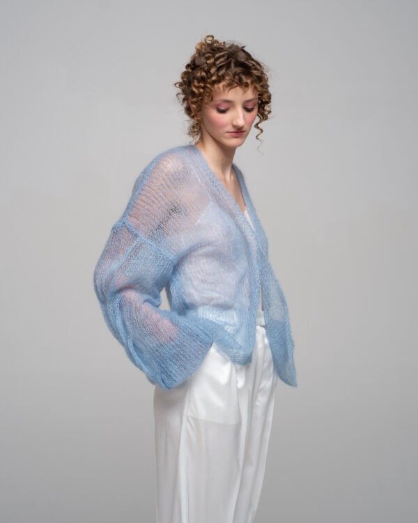 KNITTED KIDMOHAIR CARDIGAN WITH BRAID DETAIL IN PASTEL BLUE
