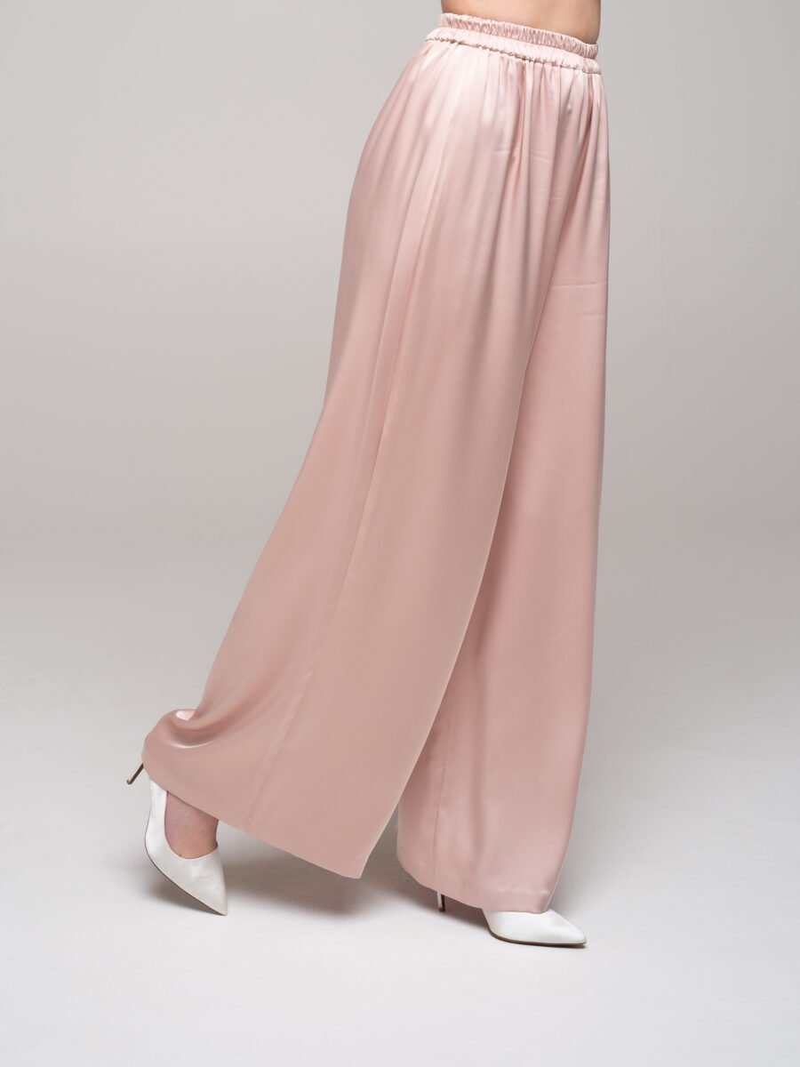 A fluid wide-leg silhouette crafted from premium silk-touch technical fabric.