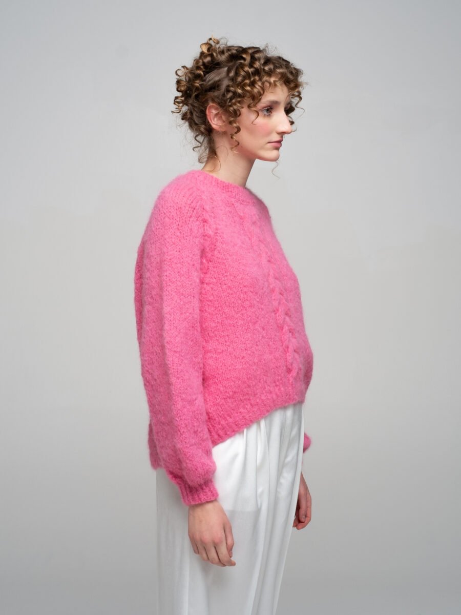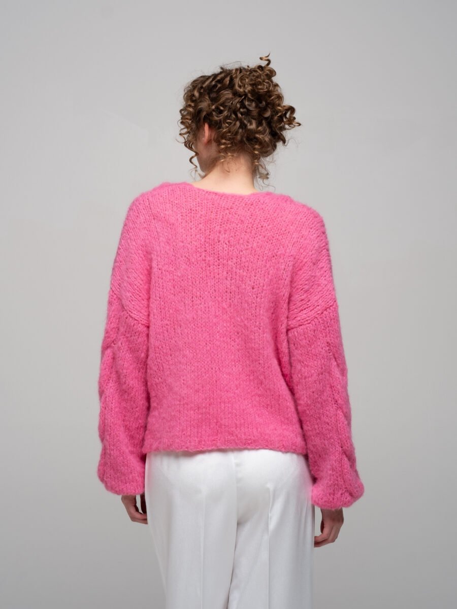 This hand-knitted merino wool sweater in gentle soft pink is pure comfort and everyday elegance.