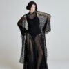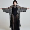 The transparency is intentional. This piece frames the body rather than conceals it. Over a bodysuit, swimwear, or evening base layer, it transforms the simplest silhouette into something powerful and architectural.