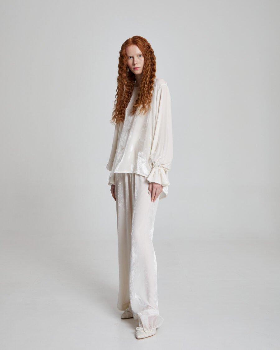 It is a piece designed for presence without excess – equally striking styled alone or paired with the matching silk velvet trousers