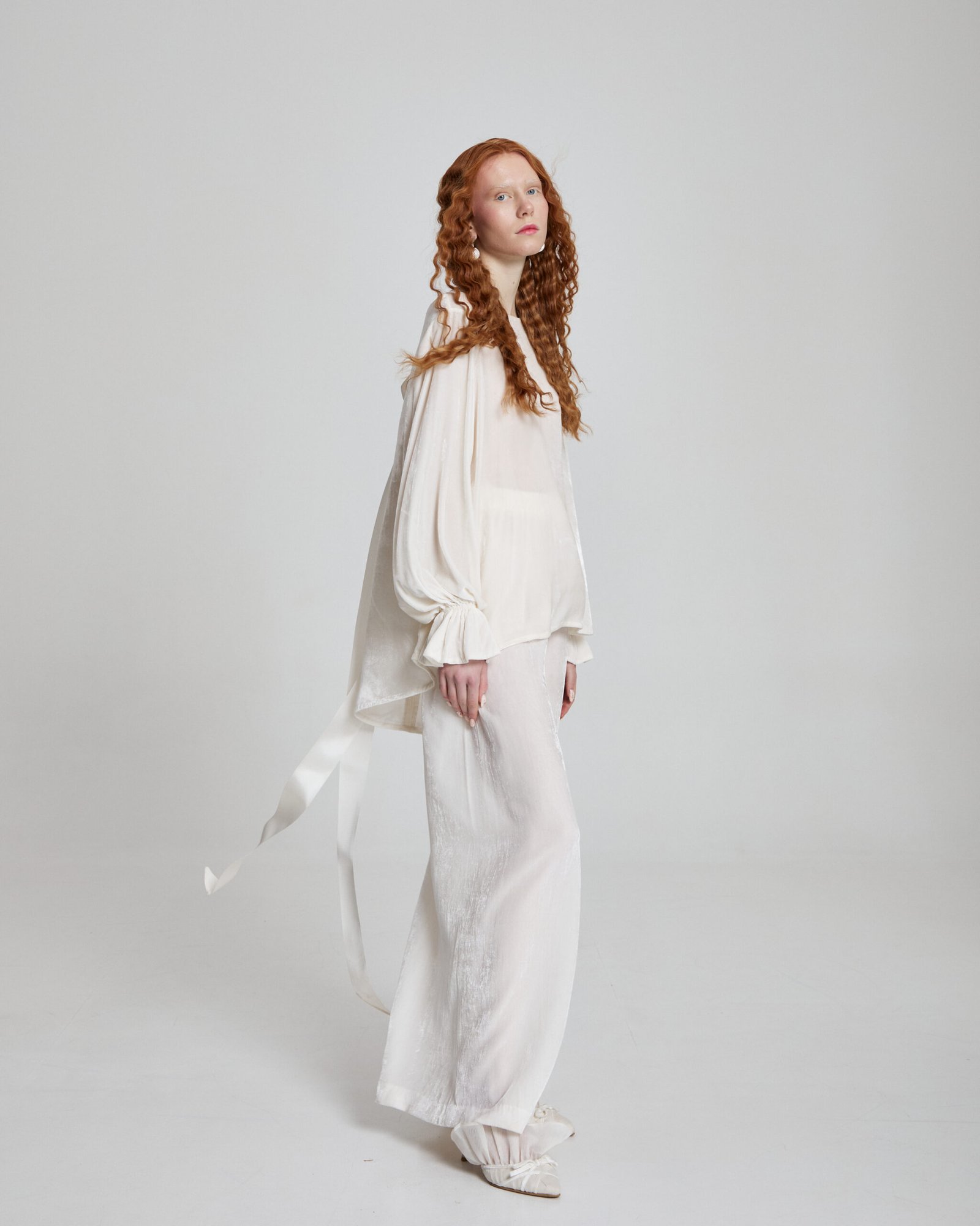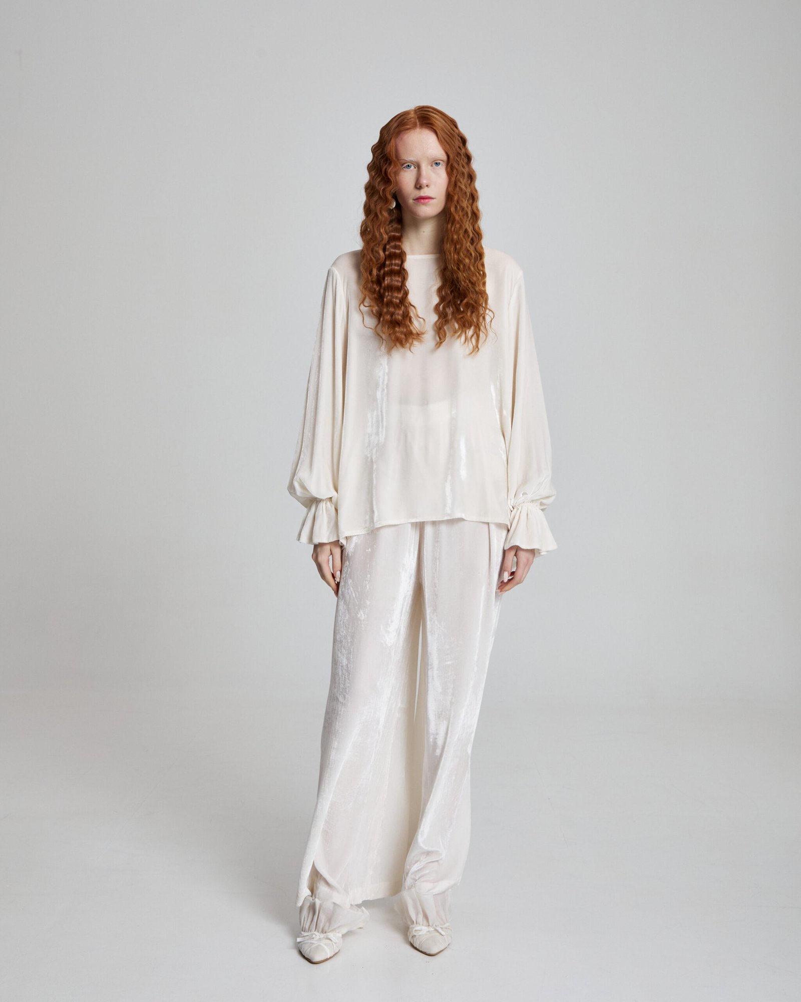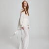These wide-leg pants are crafted from 100% silk velvet, offering a luminous drape and soft, fluid movement. Designed with an elastic waistband for effortless comfort, they balance refined luxury with everyday ease. Elegant, versatile, and timeless.