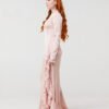The Rose Héritage Maxi Dress is sculpted through the bodice and sleeves before cascading into a full-length silhouette finished with French lace detailing. The asymmetrical lace trim creates movement with every step, revealing just enough while maintaining refinement.