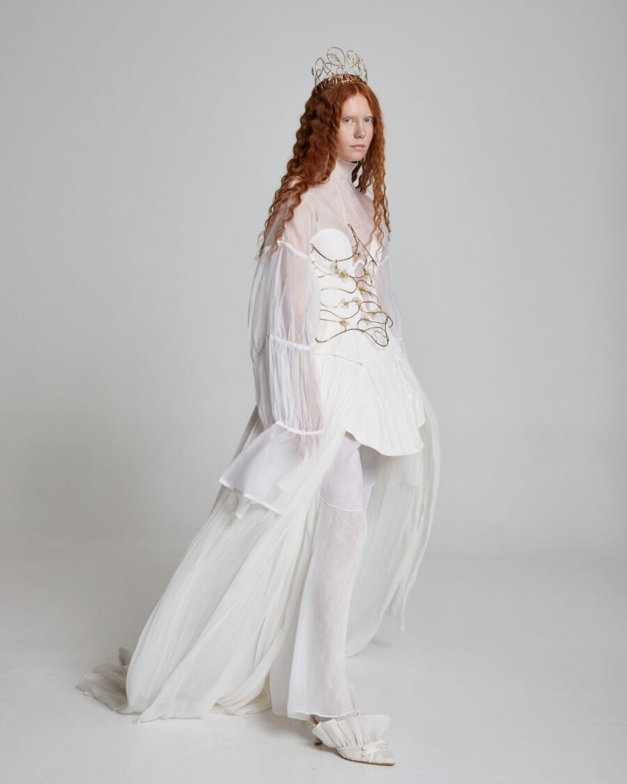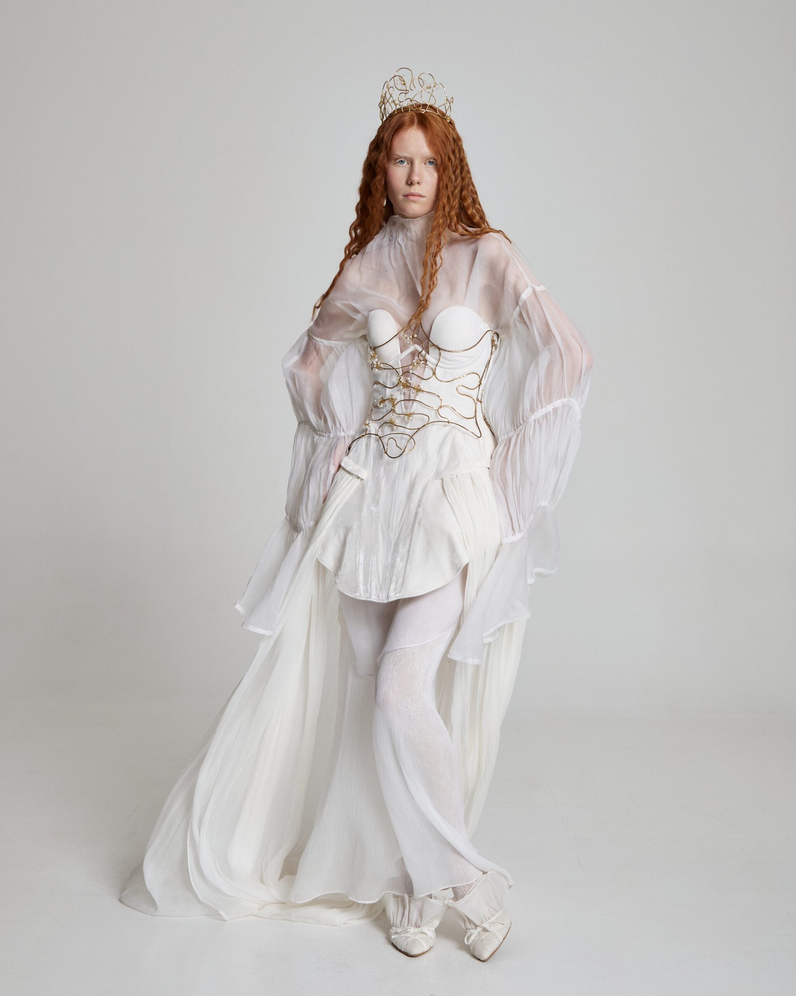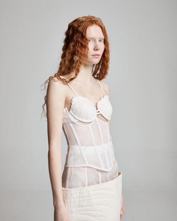 This is not traditional corsetry. It is body architecture – designed to layer over silk, organza, or bare skin